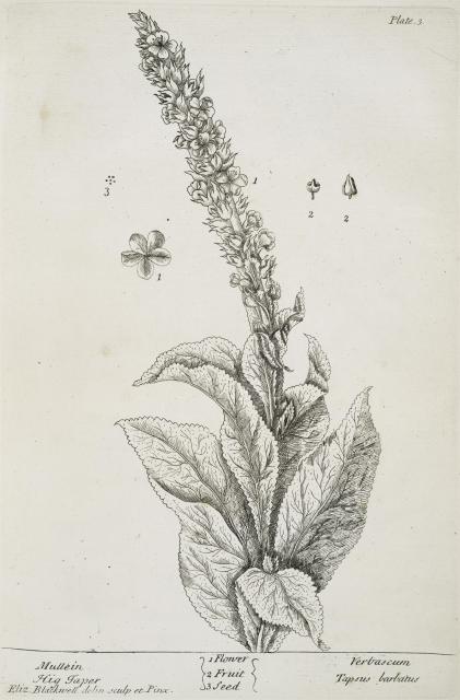 The text for this image is found on the page 001-004 Dandelion, Red Poppy, Mullein, Garden Cucumber. in A Curious Herbal, Elizabeth Blackwell, 1737 (Vol. 1), 1739 (Vol. 2).