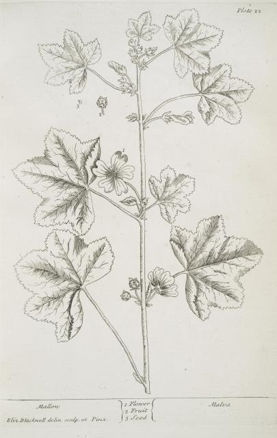 The text for this image is found on the page 021-024 Agrimony, Mallow, Cress, Self Heal in A Curious Herbal, Elizabeth Blackwell, 1737 (Vol. 1), 1739 (Vol. 2).