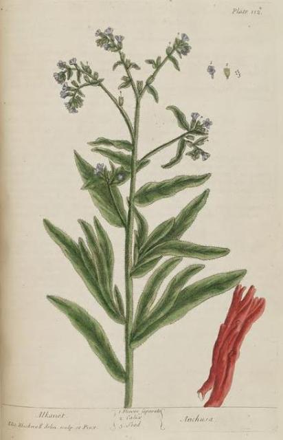 The text for this image is found on the page 109-112 Starwort, The Eupatorium of Avicenna, White Henbane, Alkanet in A Curious Herbal, Elizabeth Blackwell, 1737 (Vol. 1), 1739 (Vol. 2).