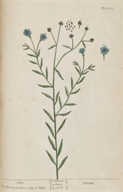 The text for this image is found on the page 157-160 Citrul, Wild Iris, Rosemary, Flax in A Curious Herbal, Elizabeth Blackwell, 1737 (Vol. 1), 1739 (Vol. 2).