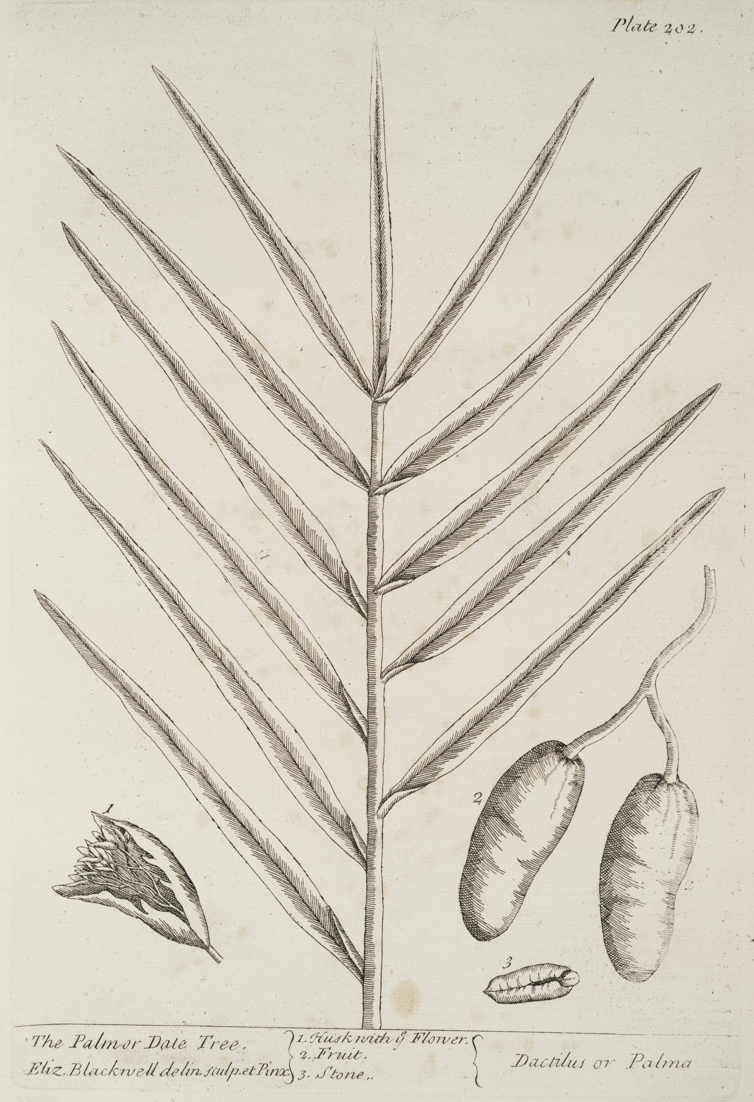 The text for this image is found on the page 201-204 The Tamarind Tree, The Palm or Date Tree, The male Fir or Silver Fir, Colt's-foot in A Curious Herbal, Elizabeth Blackwell, 1737 (Vol. 1), 1739 (Vol. 2).