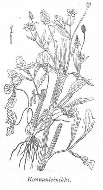 Tämä kuva on kirjasta Suomen myrkylliset ja lääkekasvit, 1936, sivu Konnanleinikki.