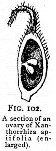 • ‹ Fig. 101. A flower and petal of Xanthorrhiza apiifolia.