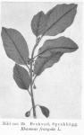 Allmänna kännetecken. är en hög 2—3 meters buske eller ett mindre träd, utan tornar, med skiftevisa grenar och mörkgröna helbräddade ovala samt skiftevisa blad. De knippevis, 2—5, i bladvecken samlade, små hvita eller hvitgröna blommorna havfa sin blomningstid i juni—juli. Frukten en s. k. stenfrukt, utgöres af ett 2—3 fröigt, till färgen först grönt, sedan rödt och såsom moget svart bär.