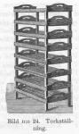 Utom de å sid. 4 omnämnda förfaringssätten kan vid torkning i det fria begagnas en torkställning af den modell, som af vidstående bild (n:o 24) framgår. Denna enkla af s. k. hyllor bestående torkställning, erbjuder det företräde framom andra, att ställningen i dess helhet med lätthet kan flyttas fran ställe till ställe utan att växter eller växtdelar rubbas och skakas. De lätt rengörbara af spjälor gjorda "hyllorna" utgöra dessutom ett utmärkt underlag för till torkning utbredda växtdelar.