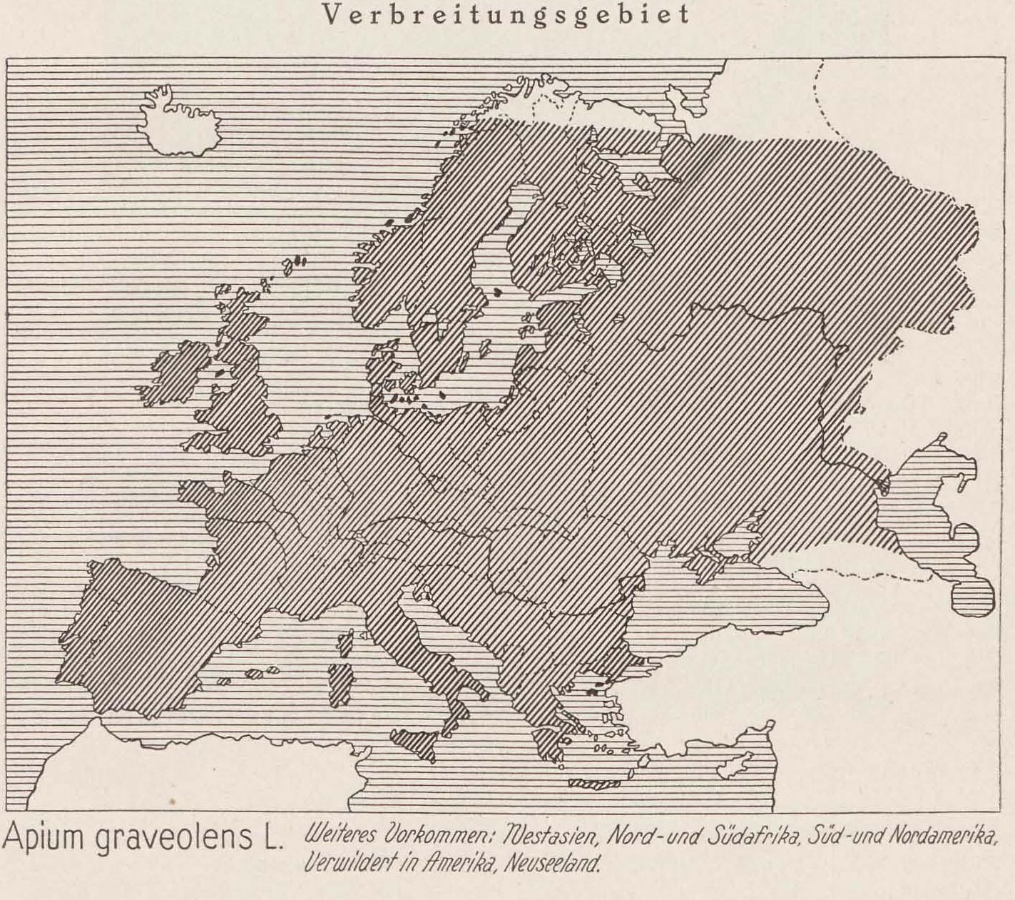 Verbreitungsgebiet: Apium graveolens L. Weiteres Vorkommen: Westasien, Nord- und Südafrika, Süd- und Nordamerika. Verwildert in Amerika, Neuseeland.