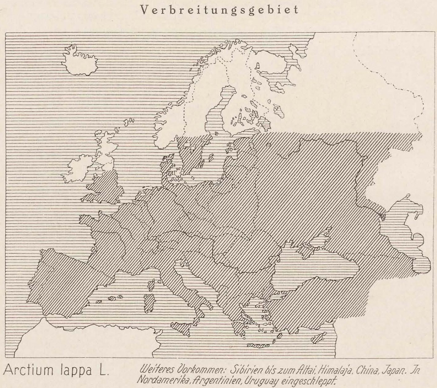 Verbreitungsgebiet: Arctium lappa L. Weiteres Vorkommen: Sibirien bis zum Altai. Himalaja. China, Japan. In Nordamerika, Argentinien, Uruguay eingeschleppt.