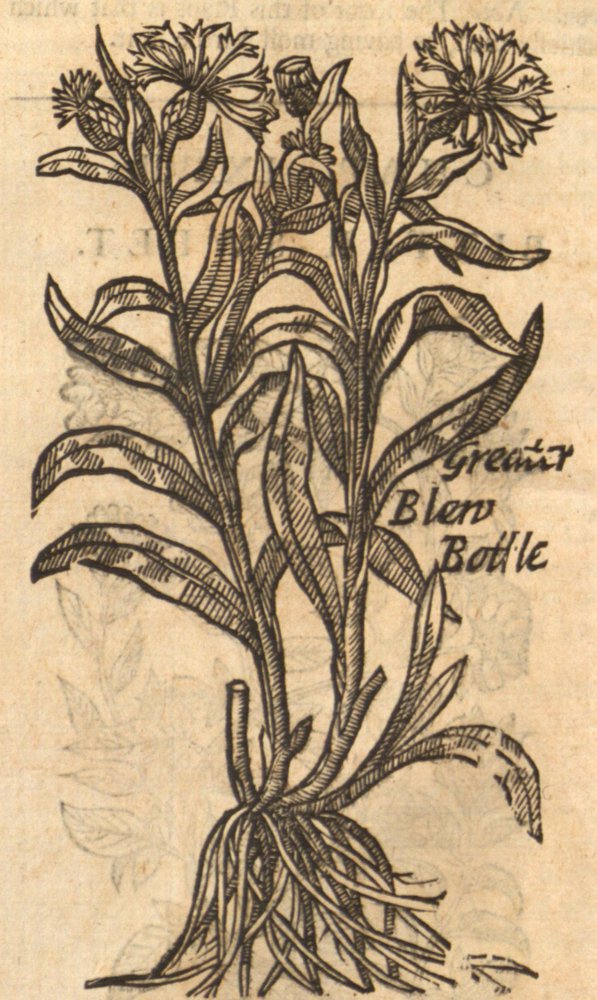 This image is from Chap. LXXVIII. Blew-Bottle. in Botanologia, Salmon, 1710.salm-blew-bottle-greater