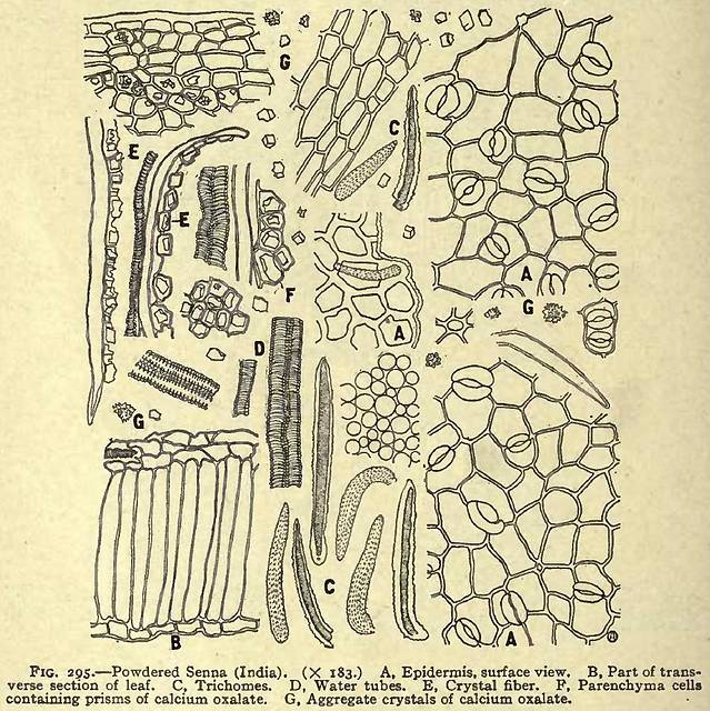 This image is from Drug Powders (also see Senna) in Sayre's Manual of Organic Materia Medica and Pharmacognosy, 1917.