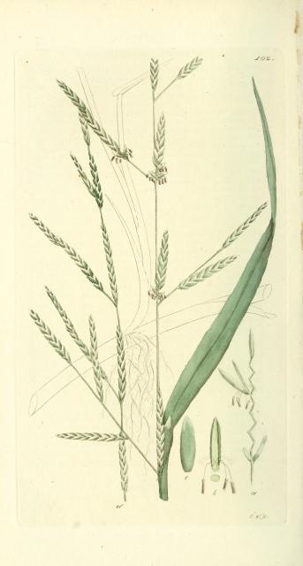 Denna bild är från boken Svensk Botanik, band 2, 1803, sida Poa fluitans.