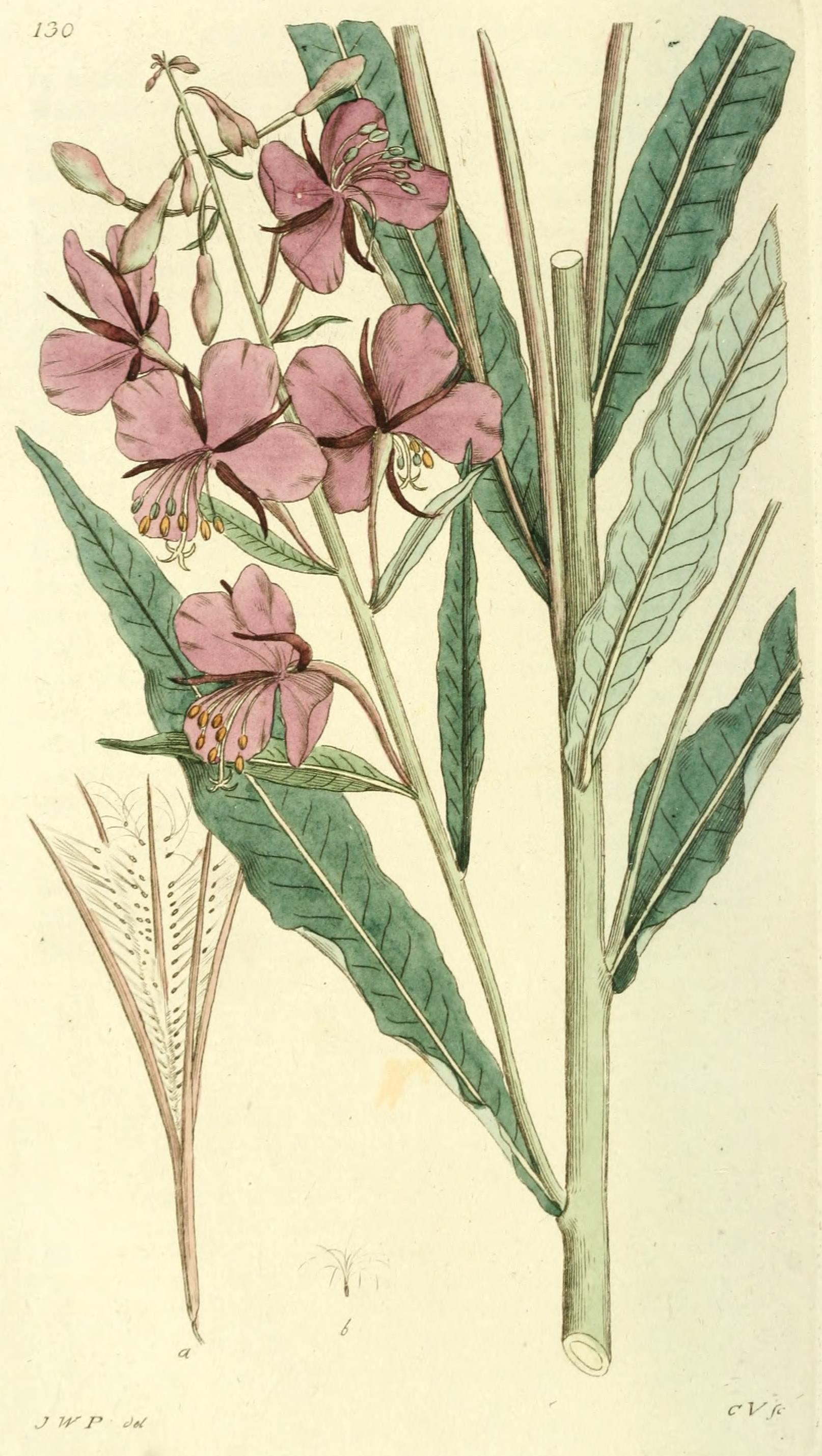 Denna bild är från boken Svensk Botanik, band 2, 1803, sida Epilobium angustifolium.
