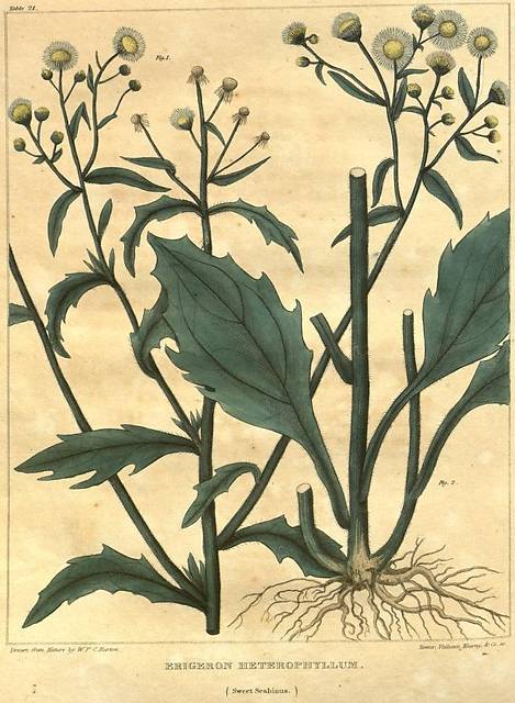 This image is from W. Barton's Vegetable Materia Medica, 1817 (Vol. I), 1818 (Vol. II), Erigeron heterophyllum.