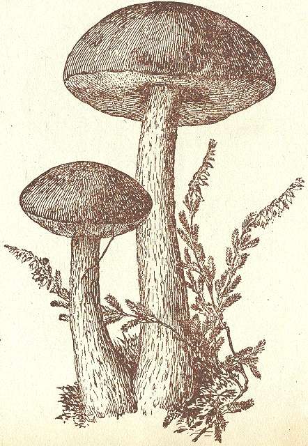 Dieses Bild ist aus dem Buch "Aus Wald und Feld den Tisch bestellt", von der Seite "Birkenpilz - Kapuziner".