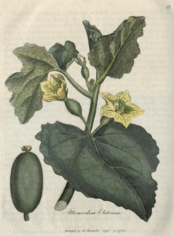 This image is from 043. Momordica elaterium. Wild, or Squirting cucumber. in Medical Botany, Woodville, 1790-1794.