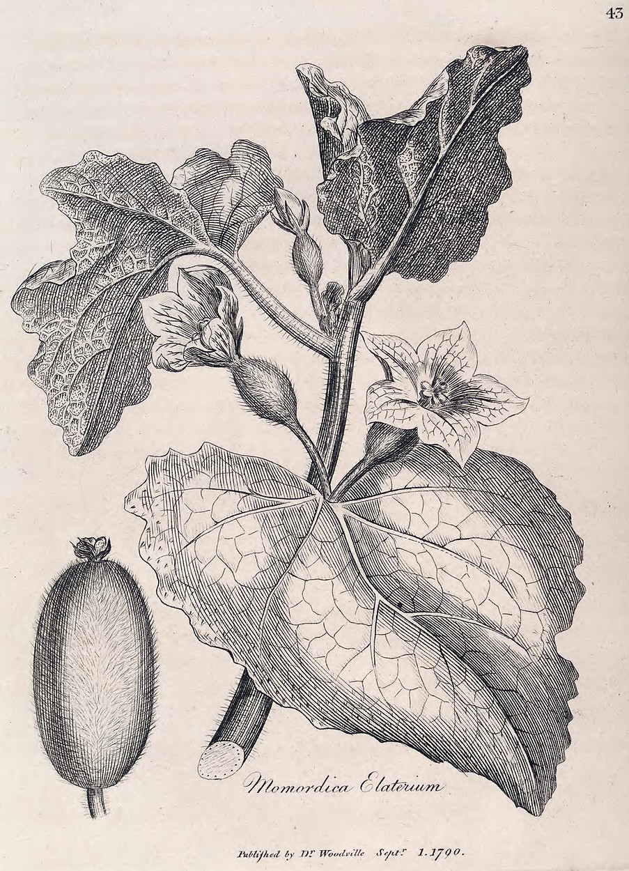 This image is from 043. Momordica elaterium. Wild, or Squirting cucumber. in Medical Botany, Woodville, 1790-1794.