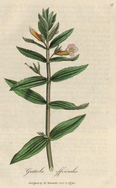 This image is from 047. Gratiola officinalis. Hedge-hyssop. in Medical Botany, Woodville, 1790-1794.