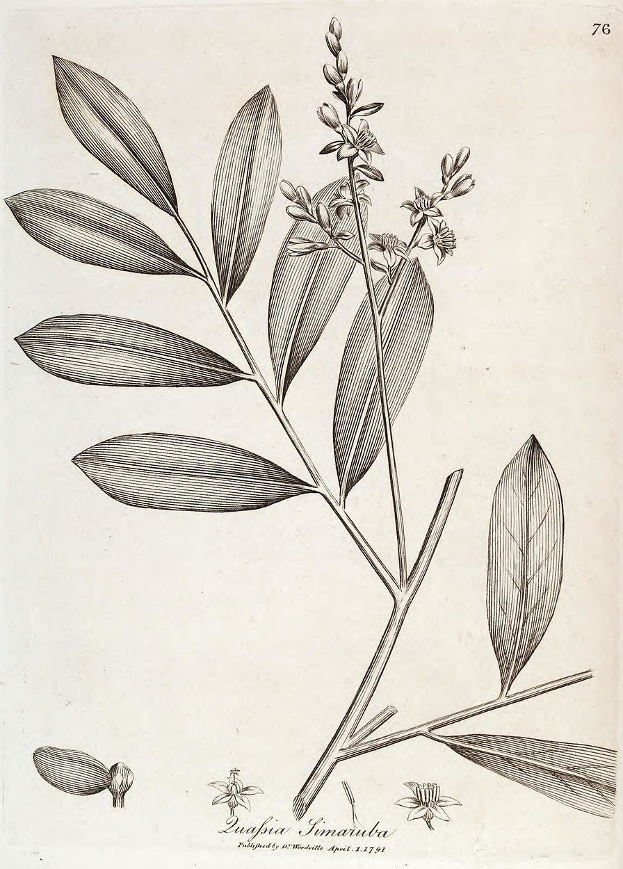 This image is from 076. Quassia Simaruba. Simaruba quassia. in Medical Botany, Woodville, 1790-1794.