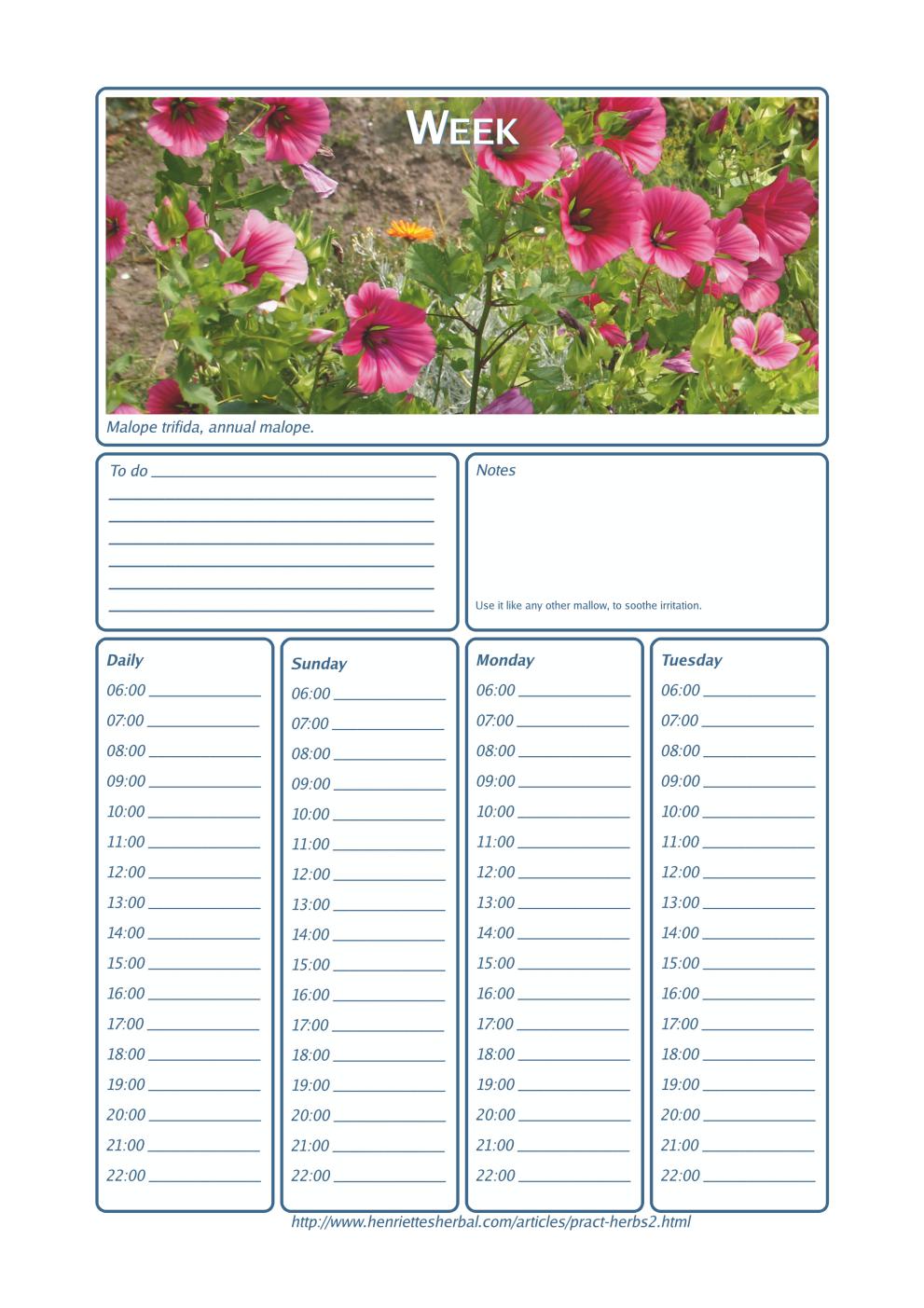 Henriette's herbal calendar 2014, Weekly planner 1.