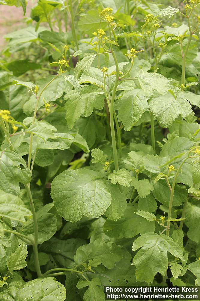 Plants with large leaves and flowerbuds. Bergianska trädgården, Stockholm, Sweden. Planted. 2011-07-13.