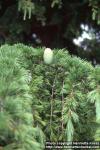 'Glauca'. Branch with cone. Kew Garden, London, UK. Planted. 2005-09-09.