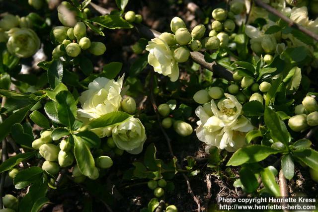 cv. Flowering branches, white filled flowers. Botanical garden Kaisaniemi, Helsinki, Finland. Planted. 2007-05-18.