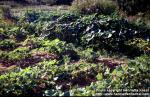Growth habit: pumpkins on compost (back) and pumpkins and zucchini in normal mulch (front). Annala, Helsinki, Finland. Planted. 2003-09-08.