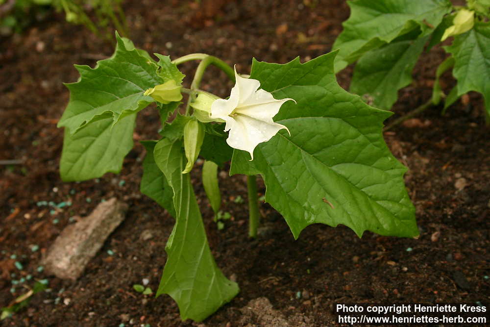 Engl.: jimsonweed, thorn-apple, angel's trumpet, apple of Peru, Jamestown weed, moonflower, purple stramonium, purple thorn-apple, stinkweed, stramonium.