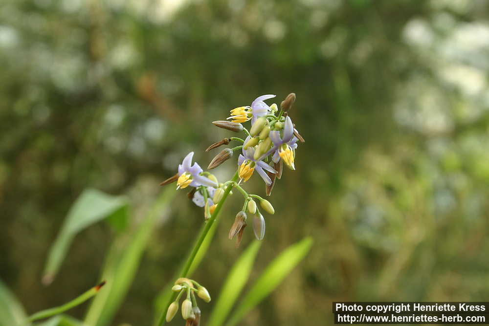 Engl.: cerulean flaxlily, blue flax-lily.