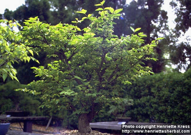 Bonsai, tree in flower. Kyoto bot.g, Japan. Planted. 2001-05-04.