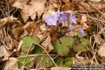 Flowers, a bit chewed on, and one of last years' leaves. Perheniemi, Iitti, Finland. Wild. 2007-04-26.