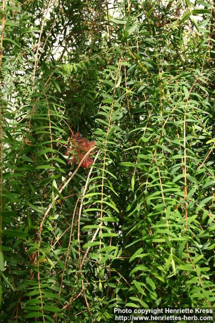 Branches hanging down over a flower. Botanical garden Kaisaniemi, Helsinki, Finland. Greenhouse. 2005-05-20.