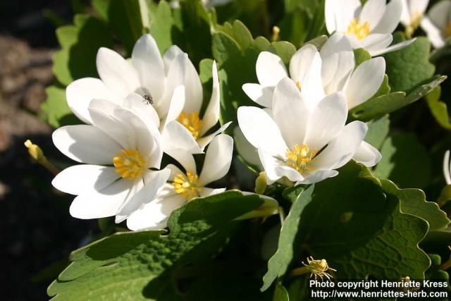 Engl.: bloodroot, coon root, Indian paint, Indian plant, Indian red paint, paucon, pauson, red paint root, red puccoon, red root, sanguinaria, snakebite, sweet slumber, tetterwort.