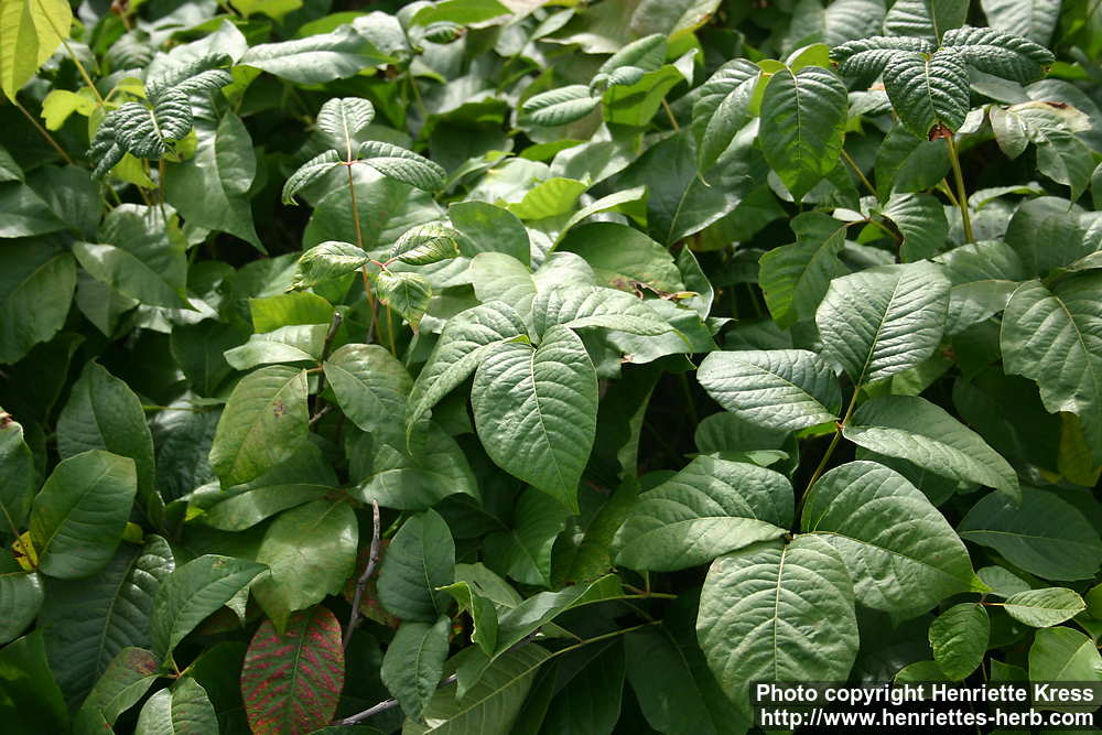 Bot. syn.: Rhus radicans L. var. rydbergii (Small ex Rydb.) Rehd., Rhus radicans L. var. vulgaris (Michx.) DC., Toxicodendron desertorum Lunell