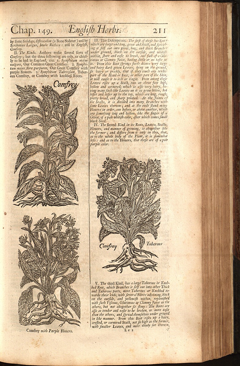 Gallery: Salmon 1710 ProofreadThis is a page to be proofread from Salmon's Botanologia, 1710. See Chap. 149. Of Comfrey. Book Navigation ‹ 00246 up 00248 ›